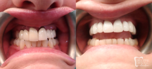 Dentist Diagnosis: Multiple “gaps” in mouth from missing teeth. Poor anterior biting ability. Anterior crossbite also present.