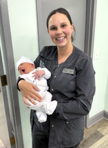 2-day-old patient pictured with Dental Assistant & Clinical Support Specialist, Taylor! Just look at that adorable yawn.